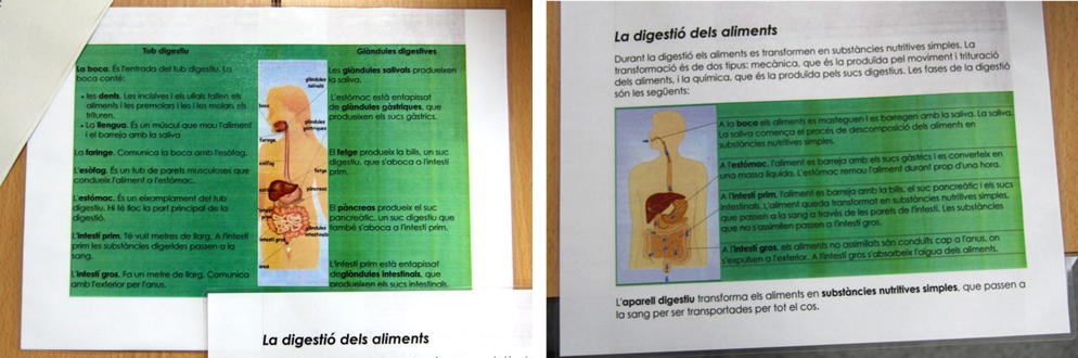 Mirando esta caja ya en el primer momento me surgió una pregunta: la diferencia con respecto a cómo los libros de texto tratan el mismo tema, ¿sería el hecho de que aquí hay que realizar una maqueta?, que además no demuestra de ninguna manera el funcionamiento real de la digestión, ya que no es más que la mera reproducción, realizada con materiales variados, de las imágenes que estaban en el dossier, como si fuera una «manualidad» cualquiera... A mí me parece que este es un ejemplo que se adapta muy bien a aquella afirmación tajante que hizo el profesor Bob Lenz durante su conferencia en Barcelona (2019): «Leer Shakespeare y hacer una maqueta del teatro Globe no es investigación, ni es un proyecto de “calidad”, y en cambio es muy común hacer esto y pensar que sí lo es...»