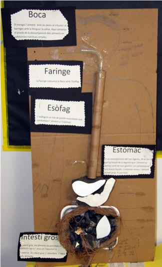 • El contenido de la caja con la explicación de la propuesta en concreto: crear una maqueta del aparato digestivo que pueda servir para visualizar el recorrido de los alimentos dentro del cuerpo humano, para que se comprenda cómo ayudan al crecimiento del mismo cuerpo.