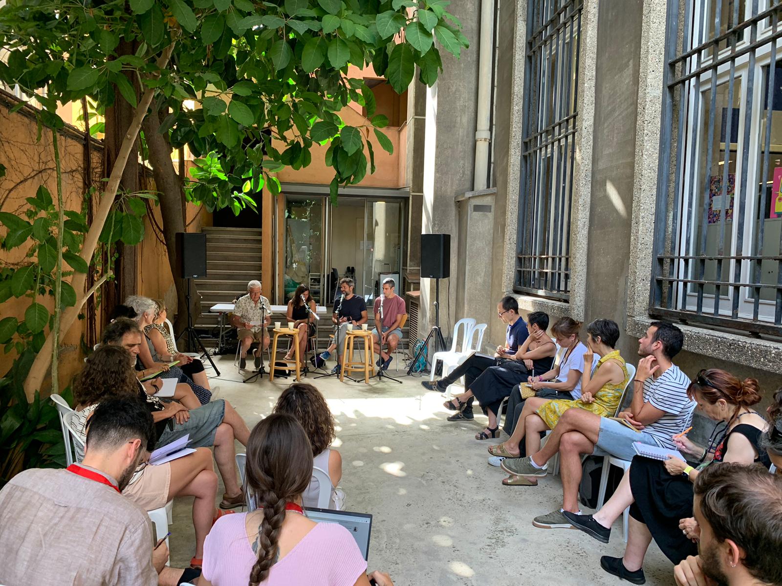 L'accés a aquest espai, situat a la planta baixa, es pot realitzar a través de la sala d'actes i del vestíbul. Amb una dimensió més reduïda que la terrassa, és un espai descobert agrable que pot acollir tertúlies i presentacions de llibre.