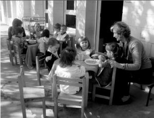 Donem molt valor al que nosaltres fem i el perquè, i creiem que la nostra actuació val més que moltes converses i explicacions a priori de com tractar i conviure amb els infants.Donem molt valor al que nosaltres fem i el perquè, i creiem que la nostra actuació val més que moltes converses i explicacions a priori de com tractar i conviure amb els infants; la mirada, el gest, l’actitud no verbal del personal de l’escola contagia un estil de relació amb l’infant i entre els adults. D’aquesta forma, tan oberta, els pares i les famílies en general van vivint la realitat quotidiana de la nostra proposta i s’estableix una gran confiança i s’obren un munt de possibilitats de comunicació i convivència, on les diferents realitats familiars i de l’escola tenen sempre un encaix que es nodreix de totes les perspectives. Per als pares que no poden estar-se a l’escola, perquè la seva situació no ho permet, potenciem que vinguin avis, tiets, germans o altres persones properes a l’infant i, si no, doncs sempre resta la possibilitat de connectar via una llibreta, telèfon, etc. De totes formes, per a tots els infants és un guany tenir algun adult a prop encara que no sigui de la seva família, ja que els vincles afectius s’amplien amb la convivència. Oferim «ser» a l’escola D’aquesta manera tothom troba un lloc en el grup, no tan sols en relació amb el seu nen o nena, sinó en relació amb els altres i amb l’escola en general: tots som competents! I d’aquesta manera, amb flexibilitat i amb confiança mútua, obrim un ventall infinit de noves situacions que fan que l’escola sigui una veritable font de vida per a tots. L’estimació i el respecte entre tots (grans i petits) ens permeten crear camins per al diàleg, l’intercanvi i l’actuació conjunta, amb més empatia pel que els altres viuen i senten, i això ens facilita aprendre i conviure junts.