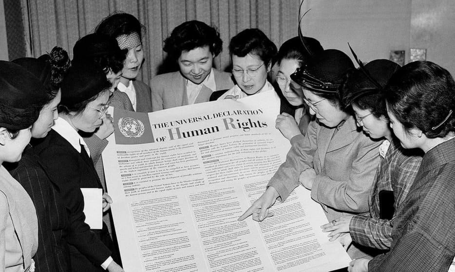 En resposta a les barbaritats comeses durant la Segona Guerra Mundial, l'Organització de les Nacions Unides —just acabada de crear—, va començar a treballar en la redacció d'un document que intentava, per primera vegada en la història, limitar el poder dels estats en favor d'una universalització dels drets humans. La redacció del text va ser fruit d'un esforç col·lectiu de representants de tot el món. El document final es va convertir en la Declaració Universal dels Drets Humans, que fou aprovada per l'Assemblea General de les Nacions Unides el 10 de desembre de 1948.
