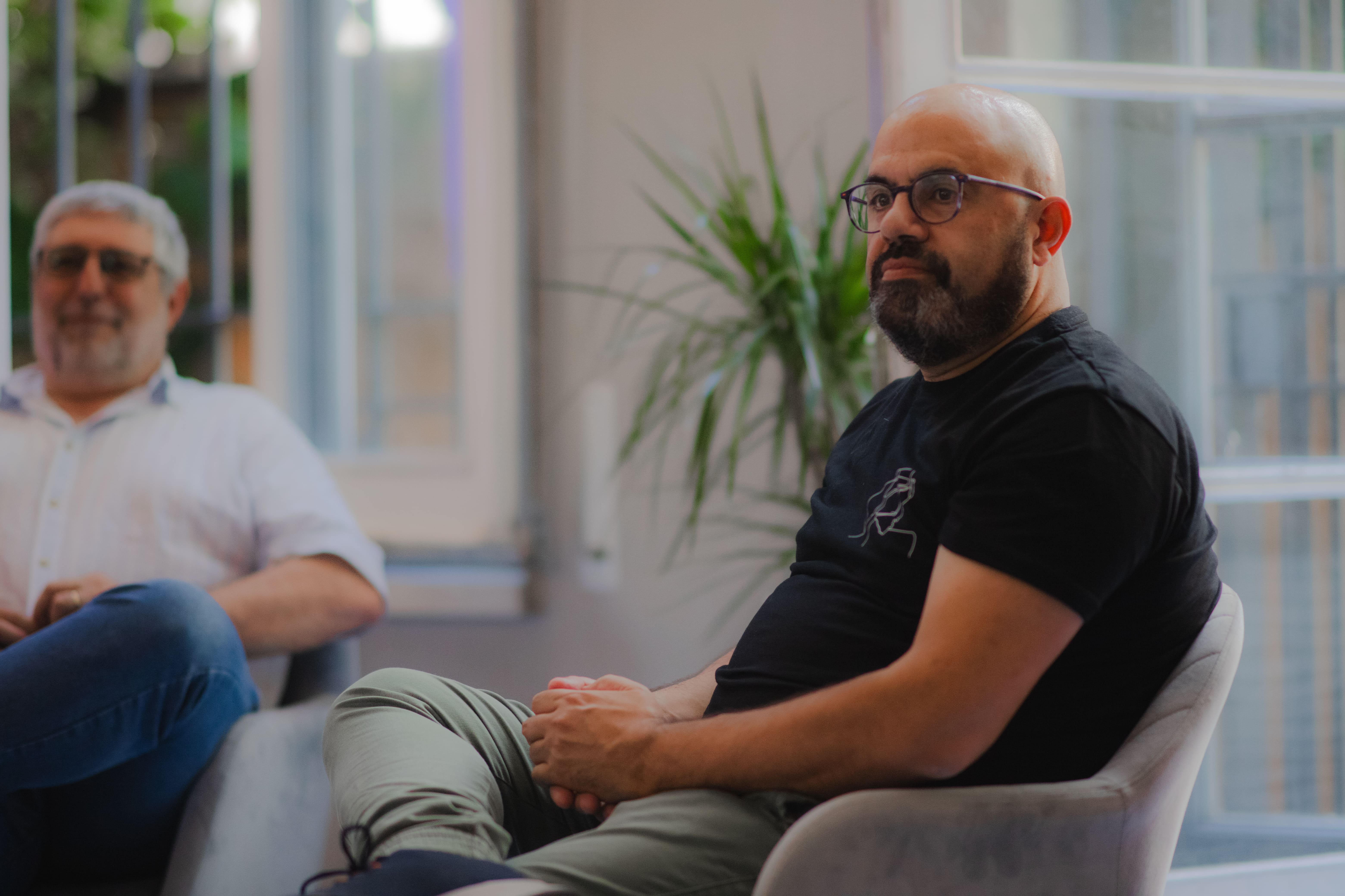 Pep Castillo va obrir la taula rodona amb una reflexió sobre la imatge social que tenim de la professió docent i de les escoles, plantejant la pregunta provocada per aquesta imatge: "Estic fent bé estudiant el màster de Secundària?". Segons ell, és essencial resignificar què significa ser docent, destacant la importància del perquè ens quedem a la professió en lloc del perquè hi arribem.