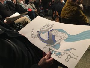 Vaig rumiar i dibuixar molt fins que va aparèixer el punt poètic, el qual pren forma a través dels personatges que veieu a la imatge.  En el moment que vivim, sort de les persones que es dediquen a creure i  treballar per a la formació de la societat perquè aquesta pugui tenir una mica de positivitat de cara al futur.