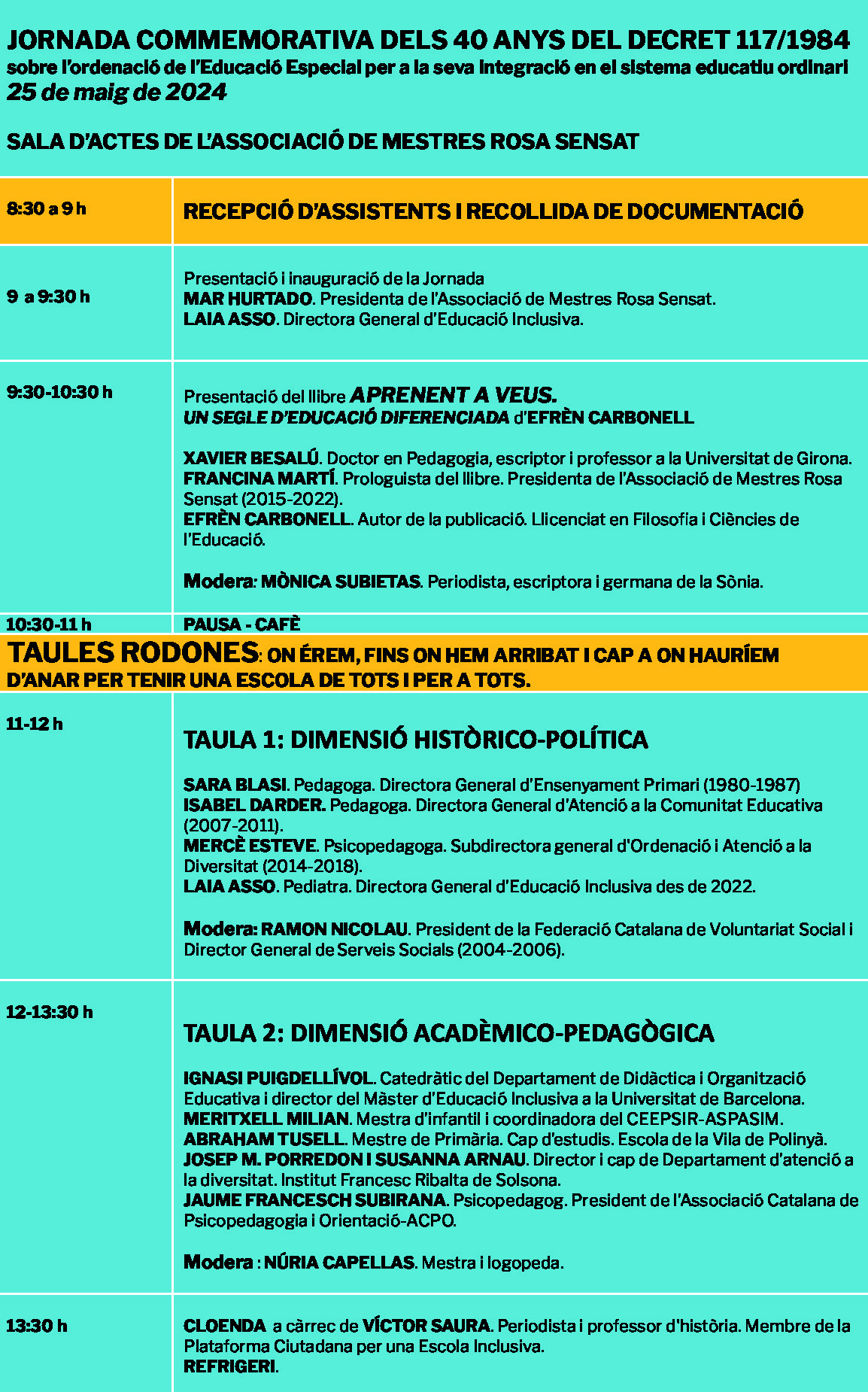- Dia i hora: dissabte 25 de maig, de 9h a 13:30h