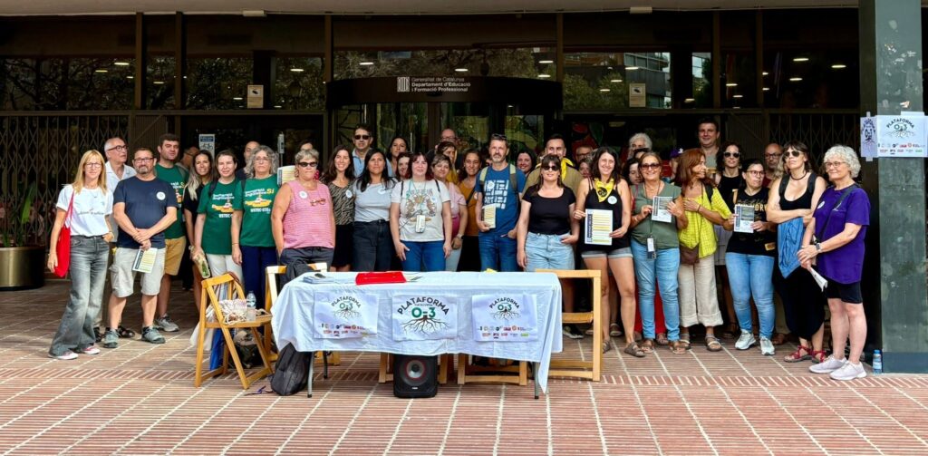 Barcelona, 4 de setembre de 2025. Aquest matí, a les portes del Departament d’Educació, s’ha presentat oficialment la Plataforma 0-3, un nou espai de coordinació i reivindicació format per sindicats, entitats i associacions compromeses amb l’educació i el benestar dels infants de 0 a 3 anys.