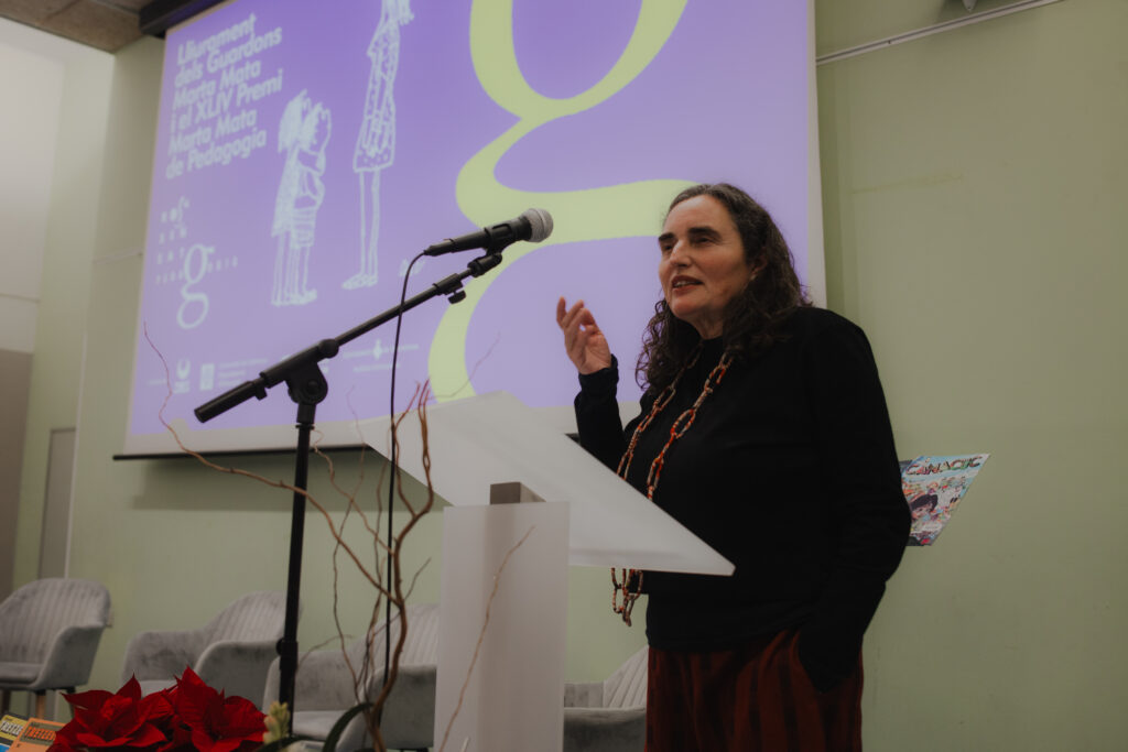 A continuació, Eva Sargatal, secretària de la Comissió Executiva de l’Associació i directora de la revista Infància, va anunciar els guanyadors dels Guardons Marta Mata 2024. Enguany, la junta rectora de l’Associació ha atorgat el guardó individual a Oblit Baseiria per la seva trajectòria professional al capdavant de la llibreria Casa Anita i per la seva vinculació i el seu treball de difusió de la literatura infantil i juvenil.