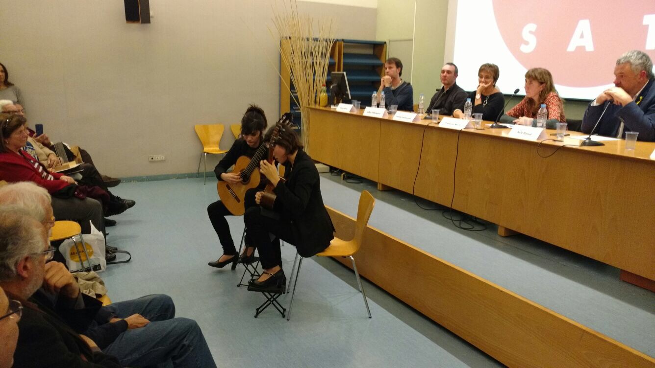 L’acte ha acabat amb l'actuació de dues alumnes del màster de guitarra del Conservatori del Liceu, Agatte Moreau i Arielle Krebs (Duo Aryaga), que han tocat el