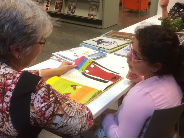 | Una voluntària del projecte amb un nena a la biblioteca José Barbero (Barcelona). Foto: Amàlia Ramoneda |