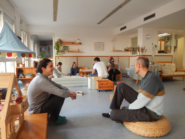 Hi ha també un temps que defineix el servei, i és quan marxen les famílies, el temps de trobada de l’equip amb la vivència de cada dia. Un temps per elaborar el que cadascú de nosaltres ha sentit i viscut en el temps d’acompanyament, on podem revisar les nostres respostes i actituds. És important que les tres persones que treballen a l’Espai Familiar tinguin la mateixa categoria, que siguin iguals. És bo que les famílies sentin que hi ha un equip. Un equip que reflexiona.