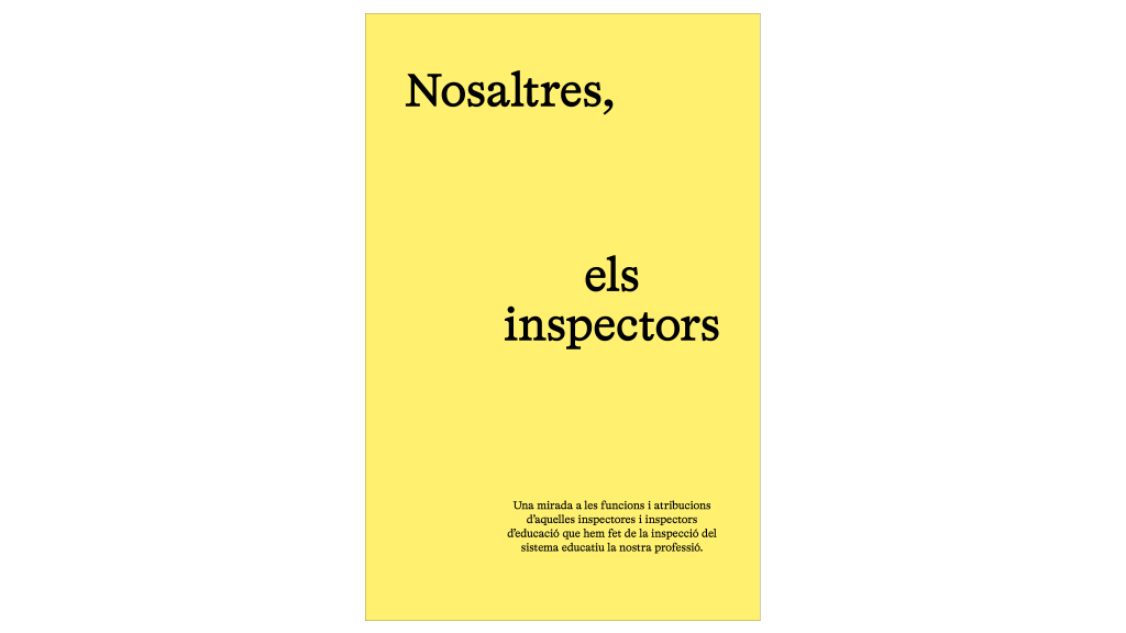 El nostre col·lectiu poques vegades ha parlat de les seves funcions i atribucions. Aquesta obra coral recull, intentant apro-par-se a la comunitat educativa, l’essència del que som, del que fem i com actuem en el nostre dia a dia.Aquest libre, ara, de portes enfora parla de nosaltres, els inspectors. Del que és la nostra vida als centres educatius, al cos-tat dels nostres alumnes i les seves famílies, també per construir -amb l’ajut de tants i tants professionals que hi intervenim – una educació millor, i un país -en definitiva – per deixar-lo millor de com l’hem trobat.