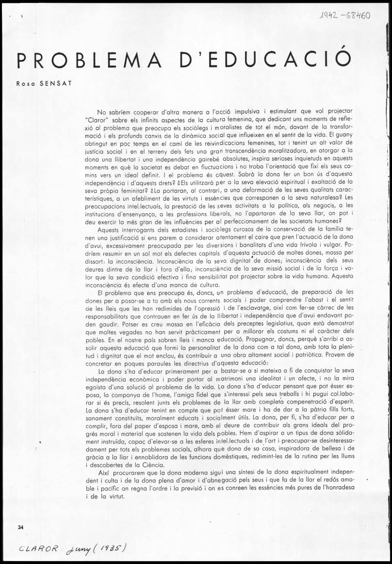 «La dona ha lluitat, i lluita encara coratjosament, tenaç i ardida, per les seves reivindicacions. Fa bé. És digne i lloable defensar i reclamar els drets que hom creu tenir.»