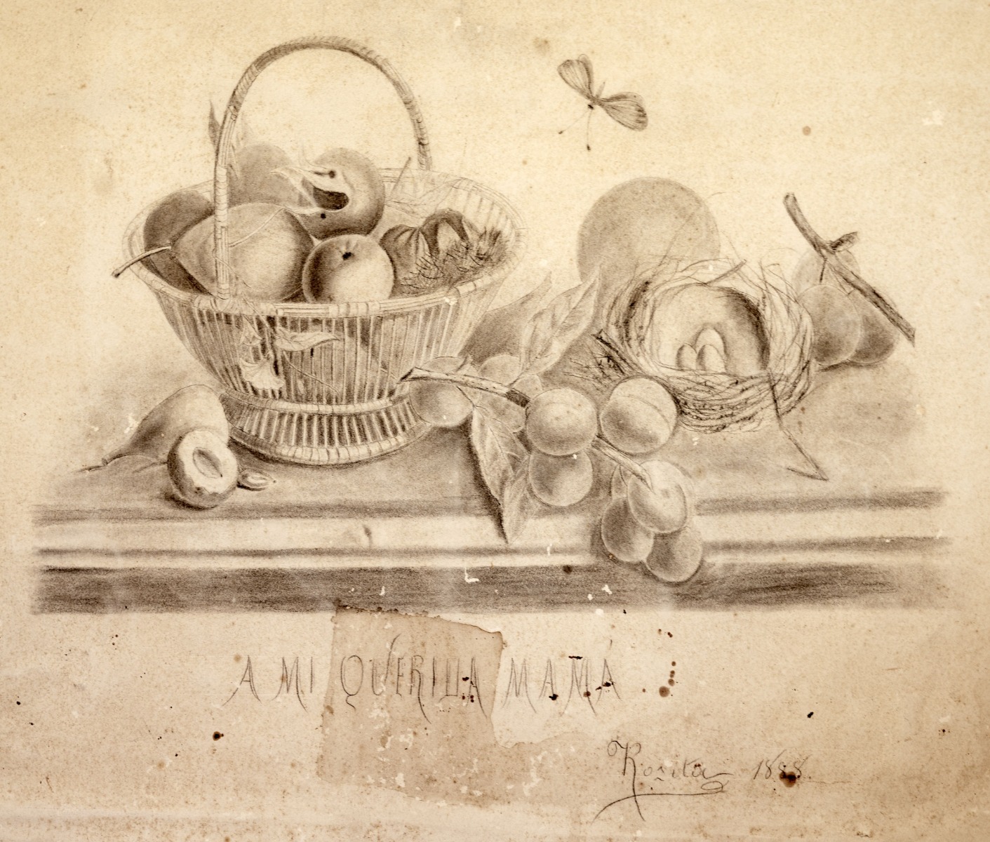 Dibuix que va fer als quinze anys, dedicat a la seva mare, Josefa Vilà. APRS