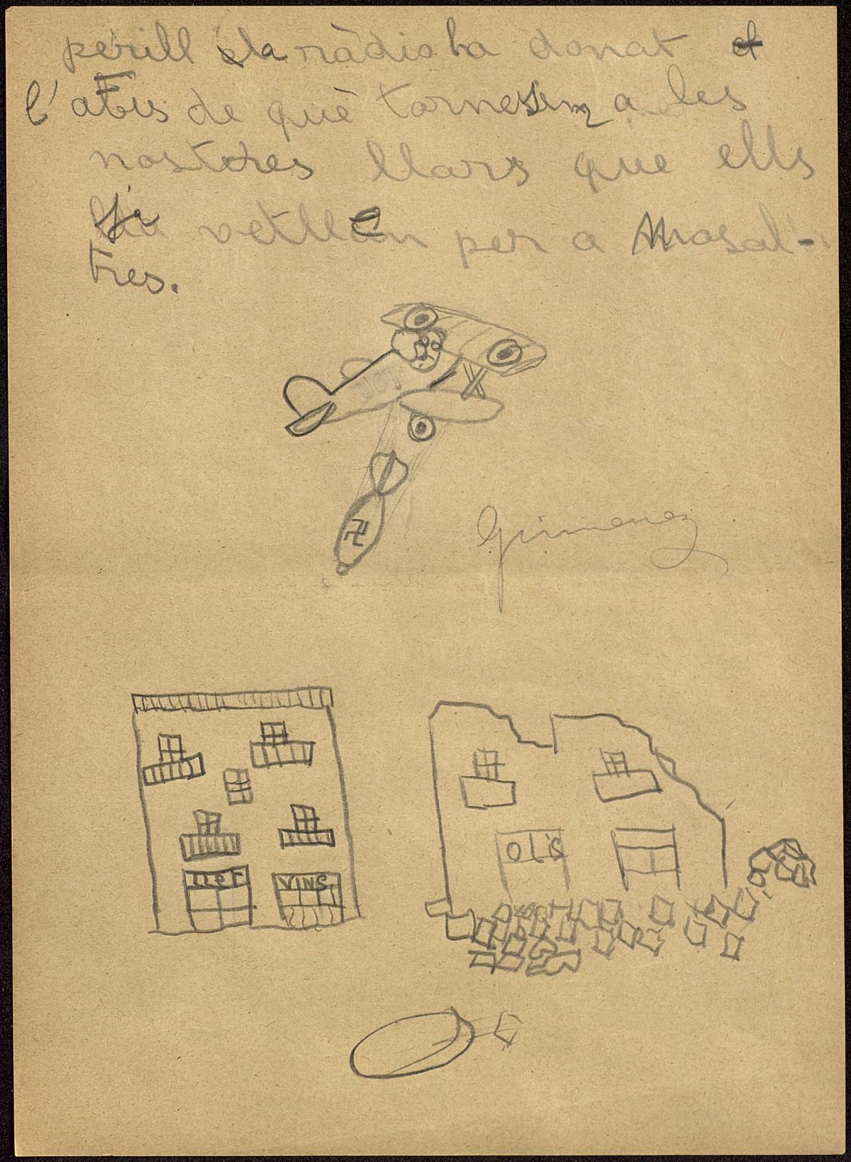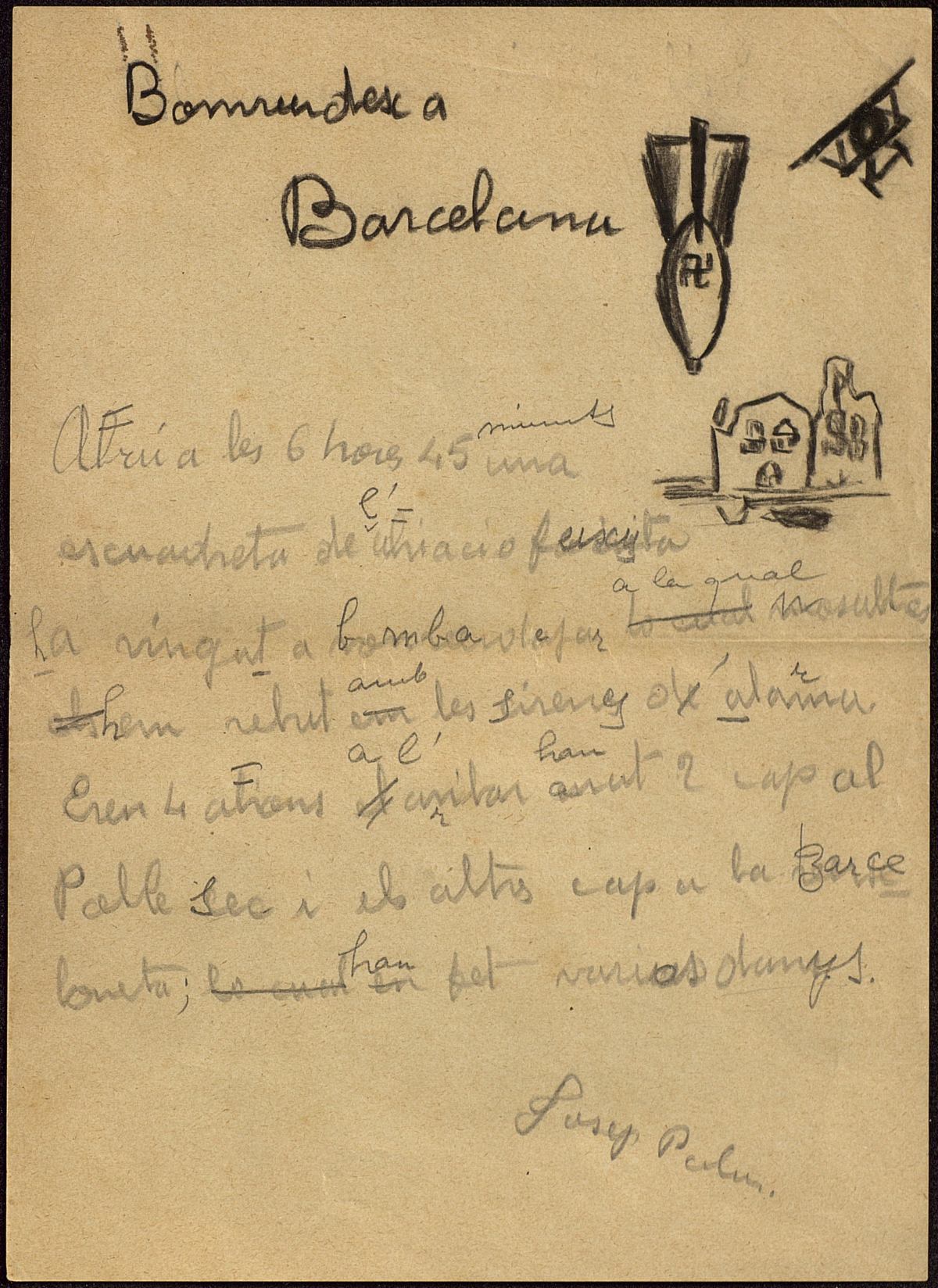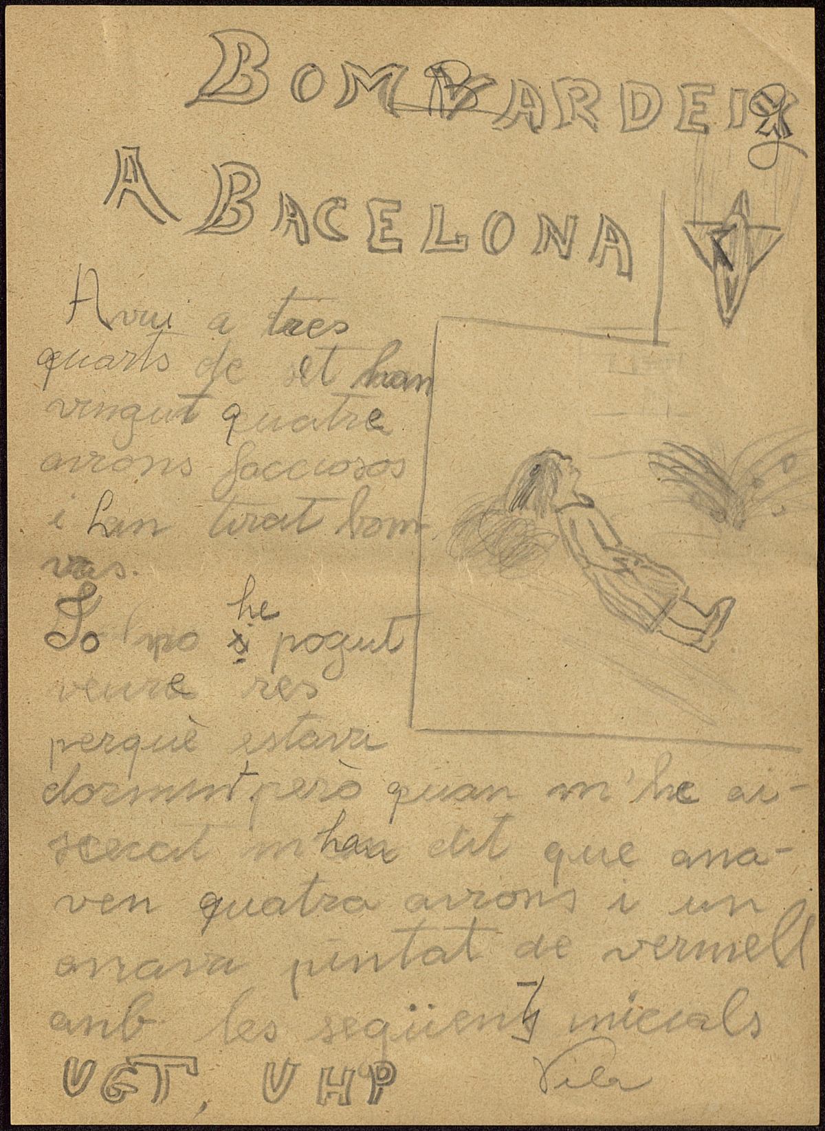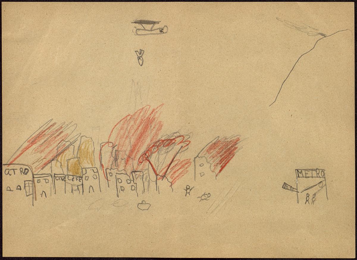 Redaccions i dibuixos del bombardeig de març de 1937 fets pels  alumnes del Milà i Fontanals. APRS