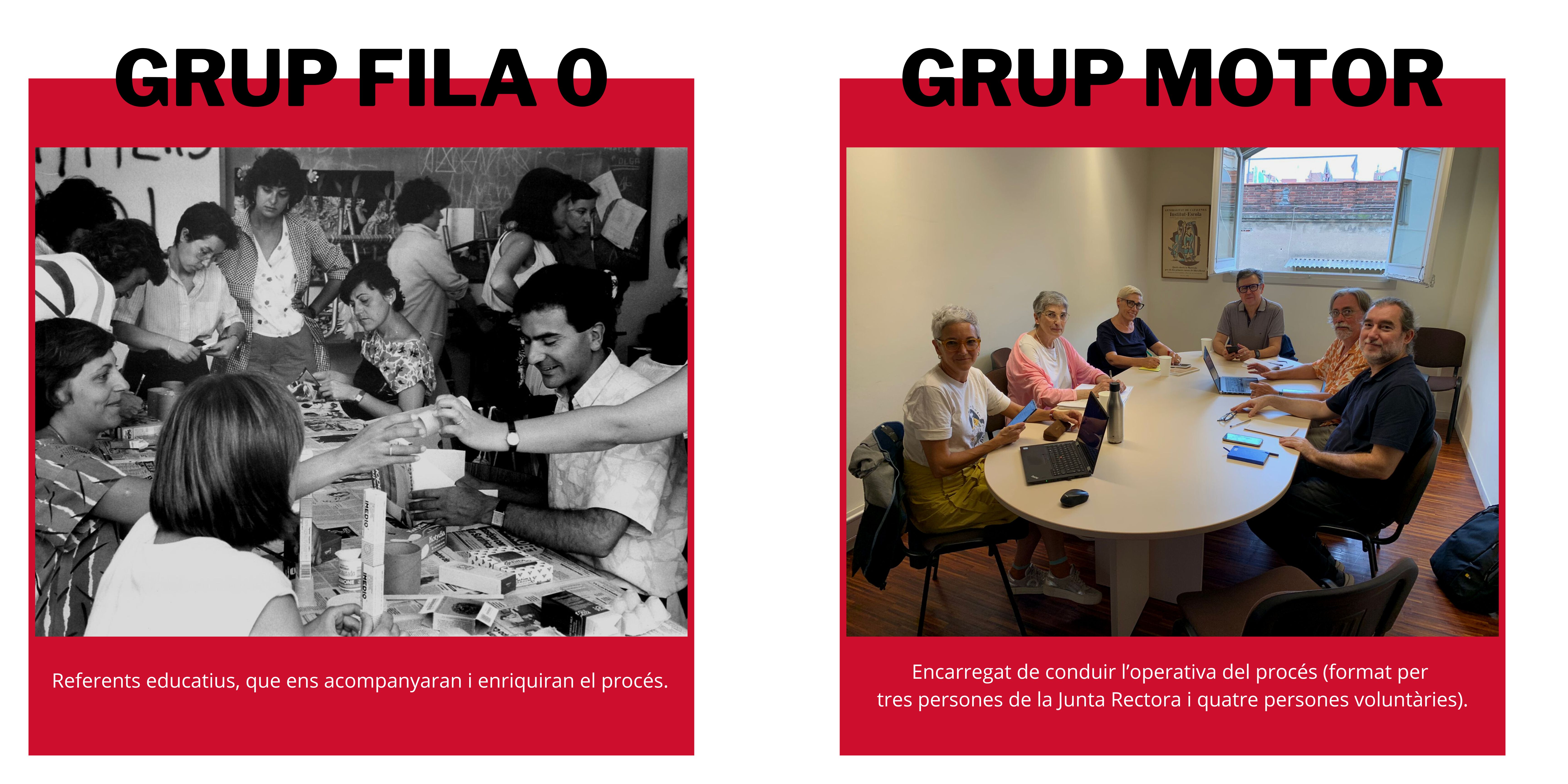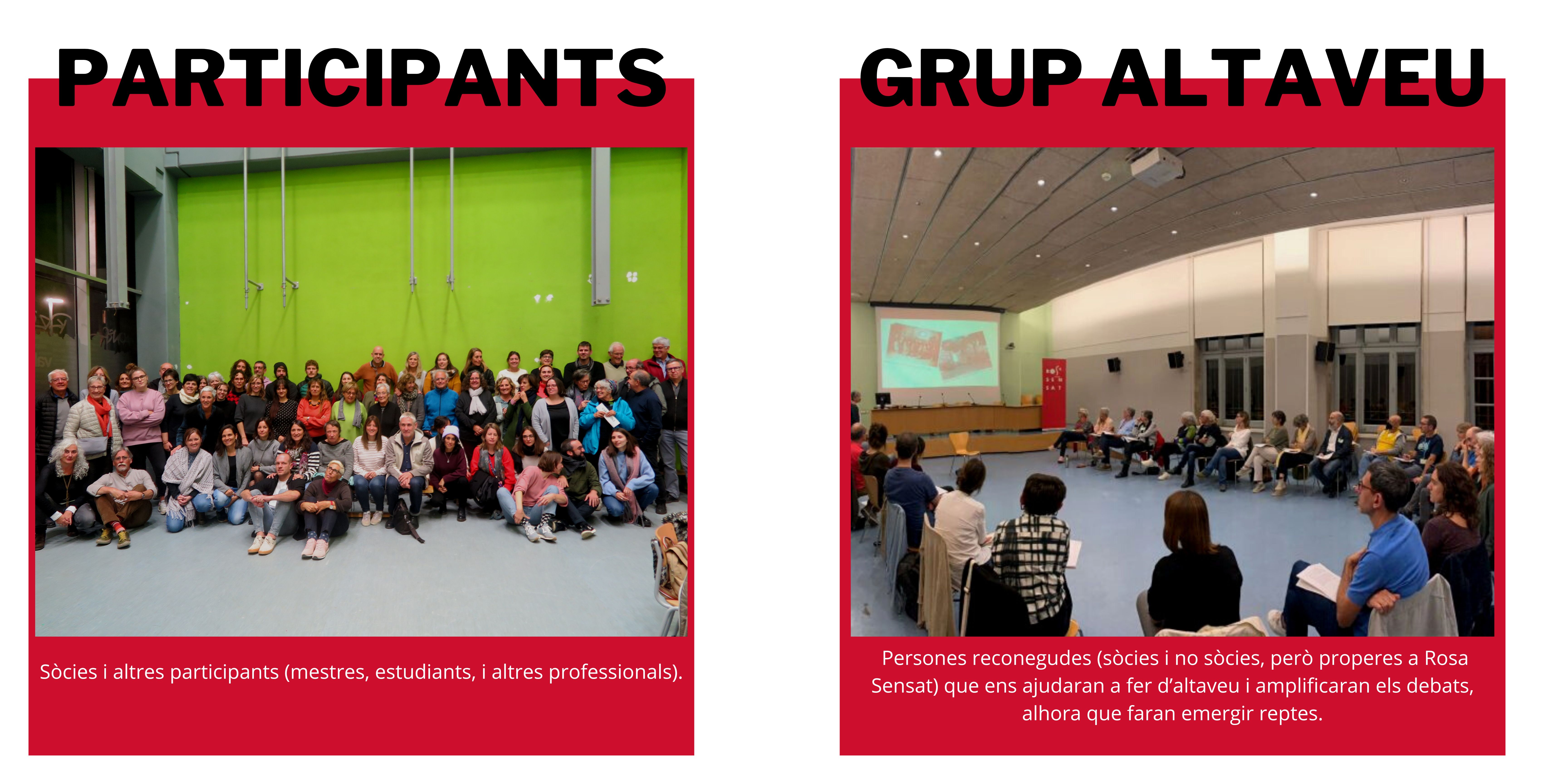 Aquest procés aplega perfils heterogenis, mestres de totes les edats i amb presència en totes les etapes educatives (des de les mestres referents i sòcies més antigues que ja s’han jubilat fins a les novells que encara tenen un llarg recorregut professional), professionals de l’educació social, psicopedagogs, educadors en l’àmbit artístic, científic, tecnològic, persones que donen suport a l’escola des de fora de l’escola, recercaires, periodistes.