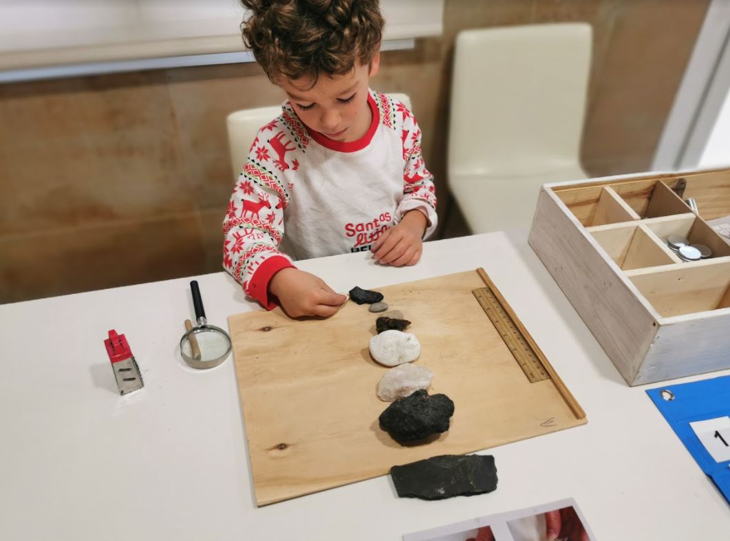 Roques i minerals: dins la caixa hi ha roques, minerals i diferents tipus de sòl. En posar a l’abast dels infants aquests materials tenen l’oportunitat de veure’ls de més a prop, explorant i investigant com són, tot descobrint i iniciant-se en el món de la geologia.