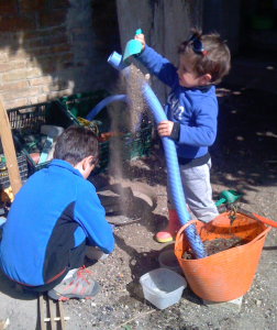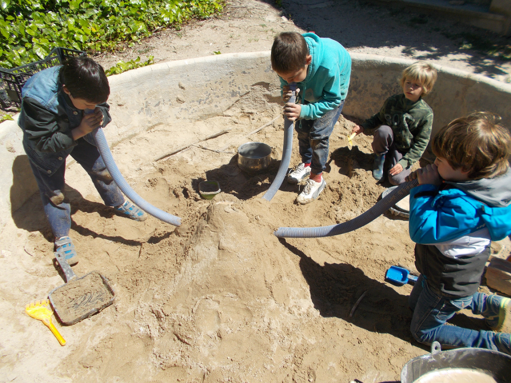 però innegable—. També hi fan llocs de trobada per al joc simbòlic, hi fan «petites polis» amb restaurants, botigues... Alhora, es donen experiències de transformació i de construcció: forats, preses d’aigua, basses, conduccions, petits mecanismes amb palanques, cordes, circuits... Aquesta capacitat de transformar materials en quelcom que té una funció, que genera un tipus de joc —i per tant, de relació— és molt valuós. Ens costaria molt, als mestres, inventar-nos quelcom que pogués substituir la funció d’aquesta activitat genuïna tan completa.