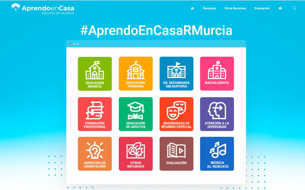 Tal y como señala el cpr Región de Murcia, el portal de recursos didácticos digitales de la Consejería de Educación y Cultura https://aprendoencasarm.com es un espacio que reúne diferentes recursos, herramientas y aplicaciones para facilitar a los maestros, familias y estudiantes la enseñanza a distancia. La web agrupa materiales curriculares elaborados por docentes de la Región de Murcia o de otras comunidades autónomas, que los ofrecen a través de blogs, páginas webs o canales educativos. También pueden encontrarse materiales procedentes de diversas editoriales, que en este confinamiento han puesto sus recursos en abierto a disposición de los docentes.