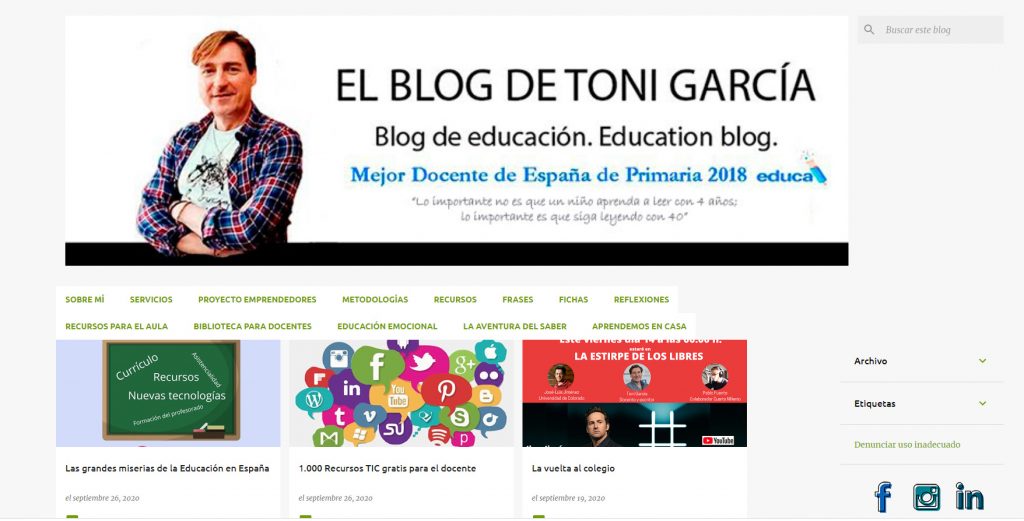 Se trata de un blog en el que se comparten recursos, artículos, vídeos, noticias y cualquier aspecto importante relacionado con la educación, y en el que ocupa un papel relevante la educación emocional.