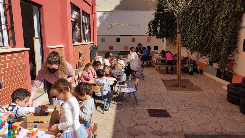 Isa: Reconozco que he pasado de tener pánico a estar bastante más segura, con pocos miedos en la escuela. Hemos sacado las clases al patio porque el centro lo permite. Cada grupo está aislado de los demás, no se encuentran ni siquiera en el patio que hemos dividido para que cada grupo tenga su espacio. Los niños y las niñas van sin mascarilla, incluso el almuerzo lo estamos haciendo en el patio. Pero ya hay maestras que están entrando para comer… Al principio hacíamos cuarentena de objetos, pero ya no lo hacemos porque son grupos estables. Respecto a la comida, quería comentar que al principio los críos no colaboraban en poner la mesa, pero ahora sí, y algunas maestras manifiestan miedo a que compartan utensilios.