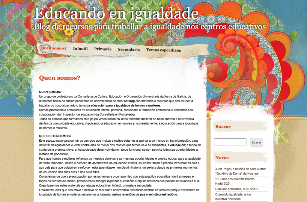 Blog de recursos para trabajar la igualdad en los centros educativos.