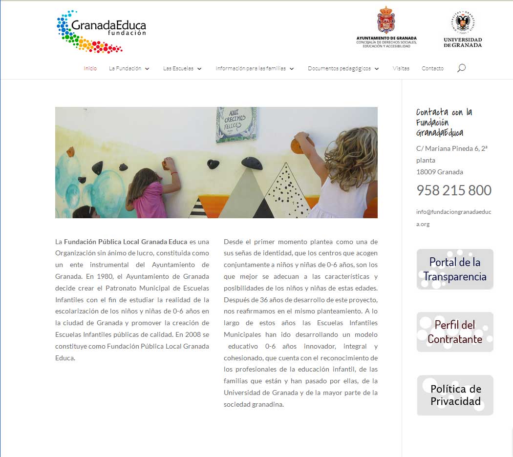 Granada Educa és una organització de l’Ajuntament de Granada amb la finalitat de promoure la creació d’escoles infantils de qualitat. Una de les seves senyes d’identitat és que les escoles acullen infants de 0 a 6 anys. I després de gairebé quaranta anys de camí es reafirmen en aquest plantejament, amb un model educatiu innovador, integral i cohesionat, que compta amb el suport de la societat granadina.