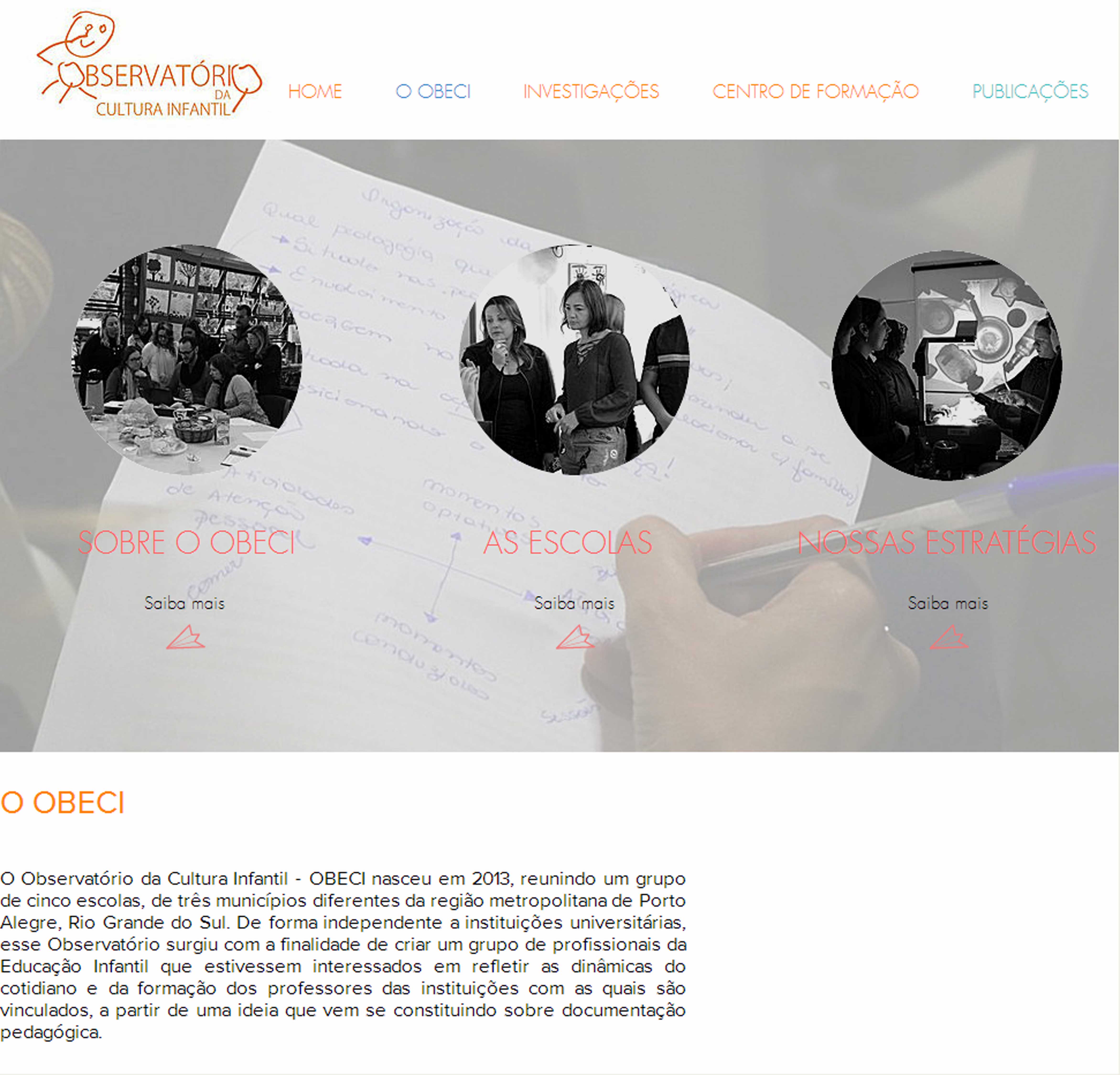 L’Observatório da Cultura Infantil (obeci) va néixer l’any 2013 de la reunió de cinc escoles de la regió metropolitana de Porto Alegre, al Brasil, amb la finalitat de crear un grup de professionals de l’educació infantil interessats a recollir les dinàmiques del dia a dia i la formació dels mestres que en tenen cura. Guia el treball d’obeci la pregunta de com es construeix una quotidianitat de qualitat per als infants i els adults. Aquestes escoles estan interessades a observar, recollir i prendre consciència d’allò que fan, per millorar-ho col·locant l’infant en el centre del projecte educatiu.