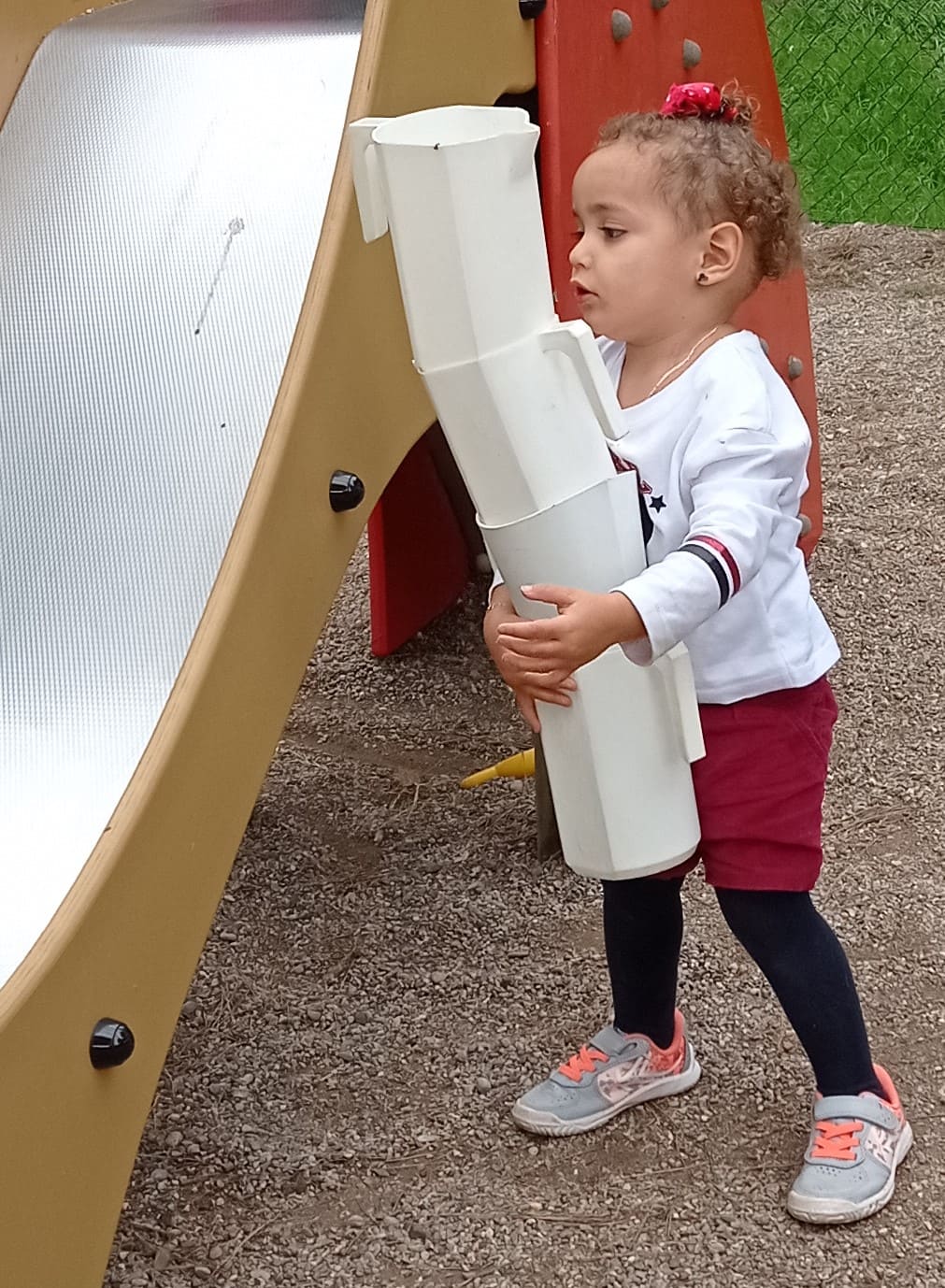 En Pau té una idea, un objectiu que el porta a experimentar amb tot el seu cos què pot fer amb aquest material. Possiblement estigui aprenent a dominar el seu cos, a dominar el sentit de l’equilibri.