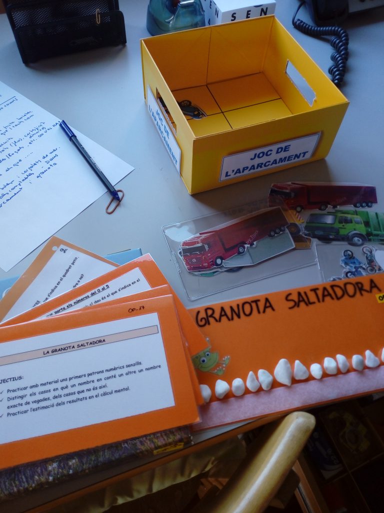 En aquestes trobades animem els assistents a fer ús de la col·lecció Els dossiers de la Maria Antònia Canals que ella va publicar, ja que són un recurs molt bo per entendre’n la complexitat i conèixer millor els processos d’adquisició de conceptes dels infants. S’hi explica amb detall la utilització dels diferents materials, així com també s’hi pot trobar una bona mostra de possibles activitats a fer. Sovint en comprendre els plantejaments també se’ns acudiran bones idees per crear-ne de nous o adaptar-los a la nostra realitat.