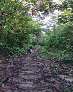 Caminho de paliçada por onde as crianças transitam