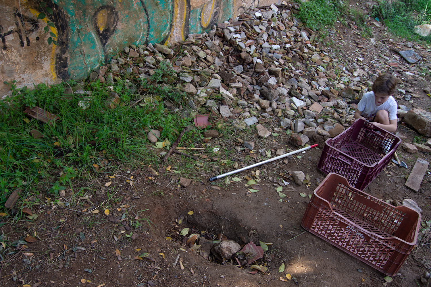 Revendo aquelas fotos antigas, vejo que naquele dia o céu estava muito azul, o sol brilhava e não ventava muito. Nem todo dia é assim em uma escola bosque, mas quando a pessoa está acostumada a estar ao ar livre, não é necessário que faça verão para se sentir confortável. Eles substituíram a sala da escola pelo bosque e pela praia, dando cor às suas bochechas e contextos de aprofundamento e concentração. Paus e pedras de vários tamanhos foram dispostos com imaginação para construir cavernas, casas, castelos ou simplesmente uma cabana.