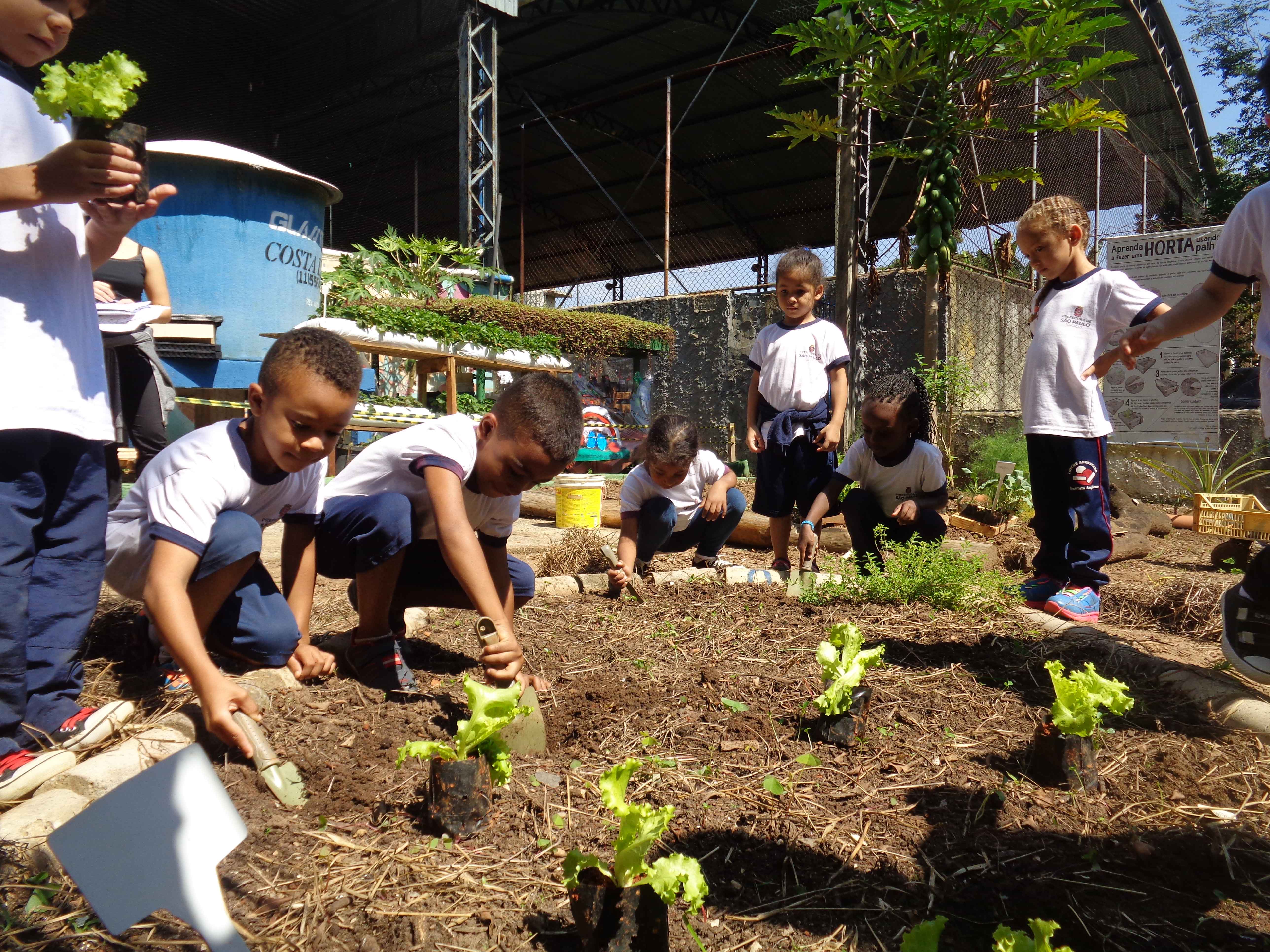 Foto de la colección de EMEI Leopoldina, São Paulo - Brasil. Huerto donde los niños se reconectan con comida de la tierra.[/caption]