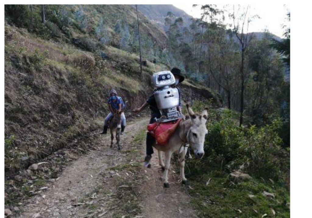 La robot “Kipi”, cuyo nombre en quechua significa “cargar”, está construida con material reciclado y chatarra electrónica reparada, que además se recarga con energía solar. Este maestro y “Kipi” se desplazan a distancias de hasta 10 horas a lomo de burro para visitar a las niñas y los niños de comunidades alejadas del distrito de Colcabamba que no tienen acceso a la comunicación.