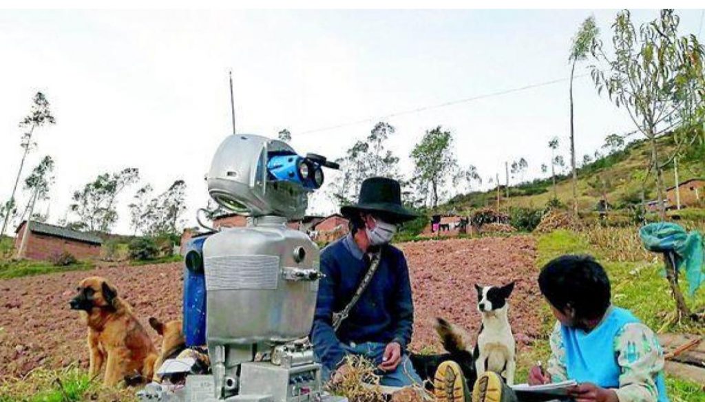 Dentro de esta coyuntura, el Estado peruano ha desarrollado el Programa Aprendo en casa, el cual llega a través de la radio y la televisión a todo el país, aunque este no cubre a todo el territorio rural, por las carencias tecnológicos mencionadas. Pero no hay duda de que frente a una necesidad, surge la creatividad de las maestras y maestros. En ese sentido, la iniciativa de un ingenioso maestro llamado Walter Velásquez del colegio Santiago Antúnez de Mayolo, ubicado en el distrito de Colcabamba, región Huancavelica, es admirable. Para atraer el interés de sus estudiantes con habilidades especiales, construyó un robot al que llamó “Kipi”.
