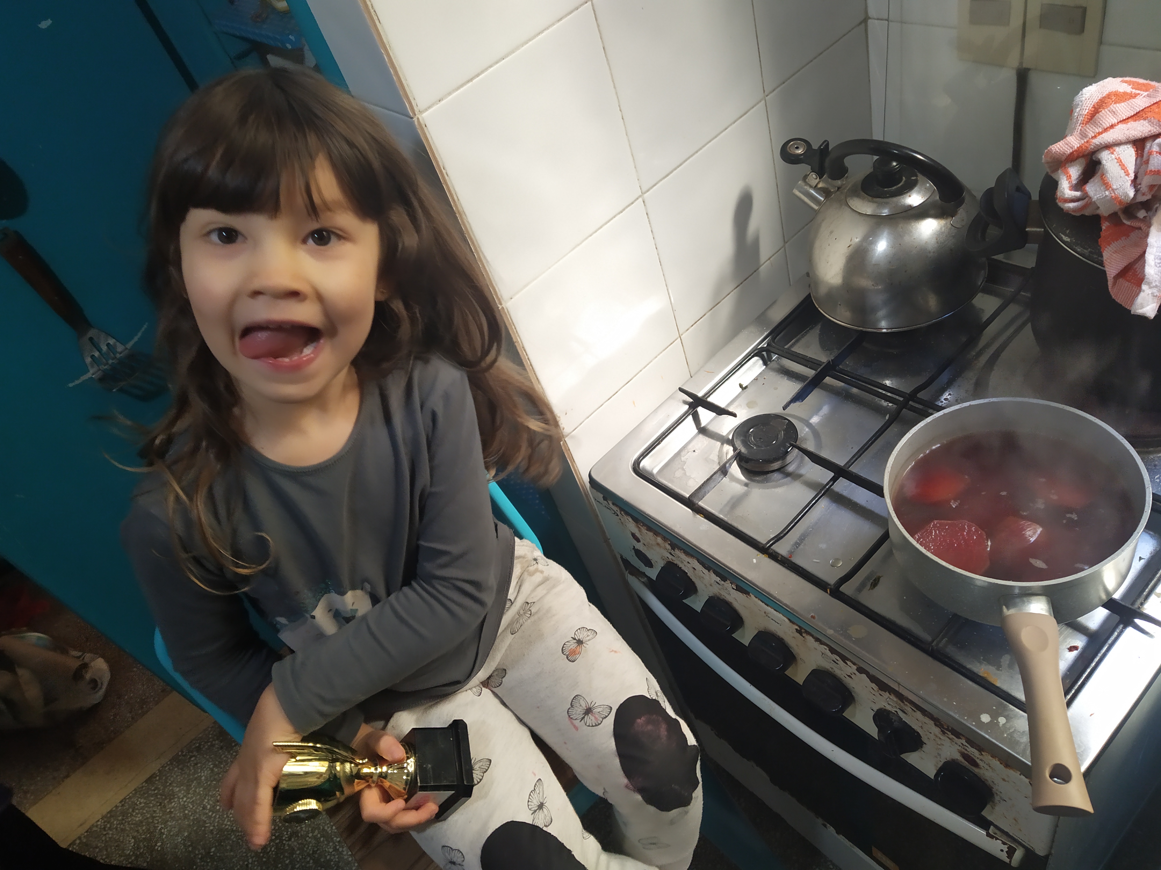 Jacinta (5 años), cocina arroz negro.