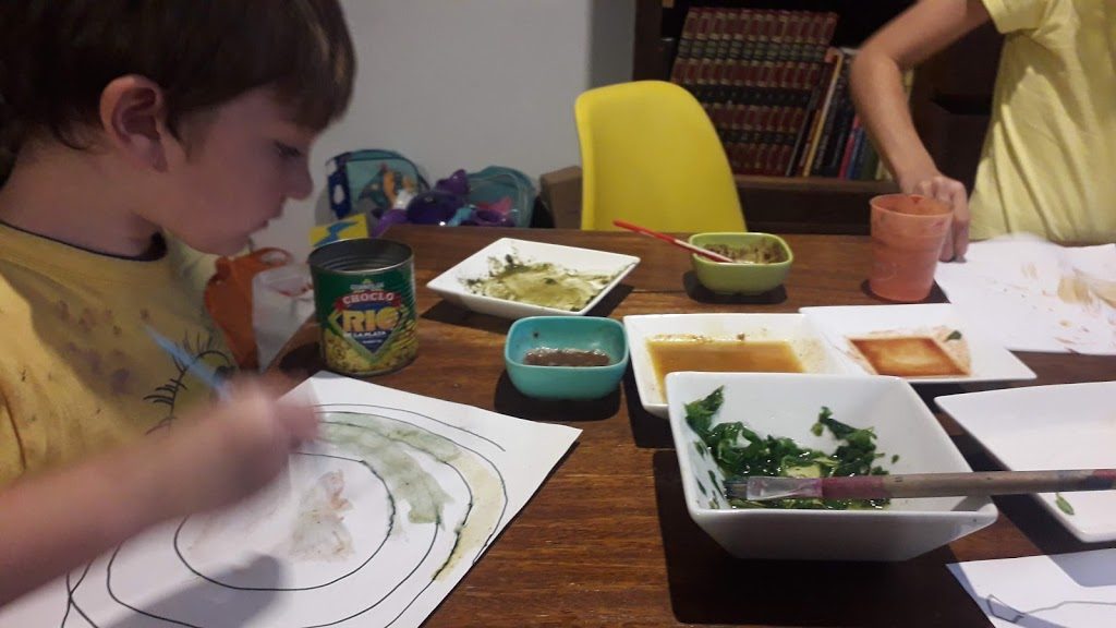 Matilda (4 años) tiñe el arroz con remolacha. Y con porotos negros,