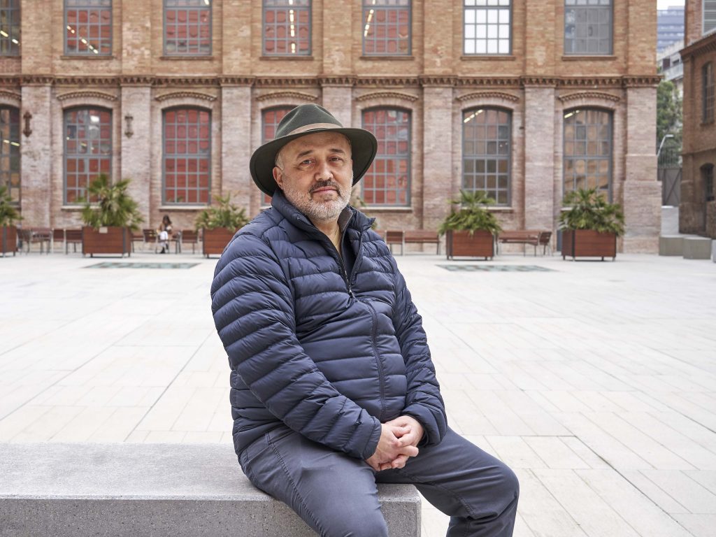 L'editorial Anagrama publica L'art de fer classe (segons un lingüista), l'últim llibre de Daniel Cassany (esquerra). A dalt, assegut al pati del campus del Poblenou de la UPF.[/caption]