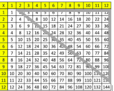 Per cert, la taula sencera de multiplicar (12 × 12) és digna de ser explorada. Quins són els productes que donen el mateix resultat? Quins són els nombres que es repeteixen més cops a la taula? Per què? I us podeu plantejar moltes altres qüestions.