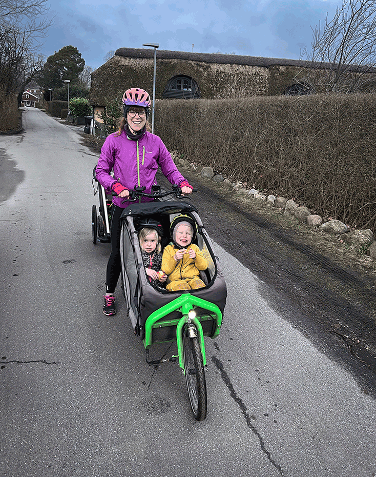 Vsita d’un pare de quatre criatures Al cap d’uns dies estic a punt per a la següent entrevista. Em vindrà a veure en Lasse quan hagin posat els fills a dormir. En Lasse viu carrer amunt amb la Susanne i quatre fills: dues bessonades de tres i sis anys respectivament. La majoria els considerem herois quotidians quan se'n van de vacances d’hivern amb els quatre fills, que han d’aprendre a esquiar amb seguretat de ben petits. Sovint els veiem passar pel carrer a tota màquina amb una bicicleta de càrrega on poden anar asseguts els dos més petits, mentre que els més grans segurament van amb bicicletes de dues rodes. En altres paraules, una família on hi ha molta activitat física, on es prioritzen el moviment i les activitats a l’aire lliure.