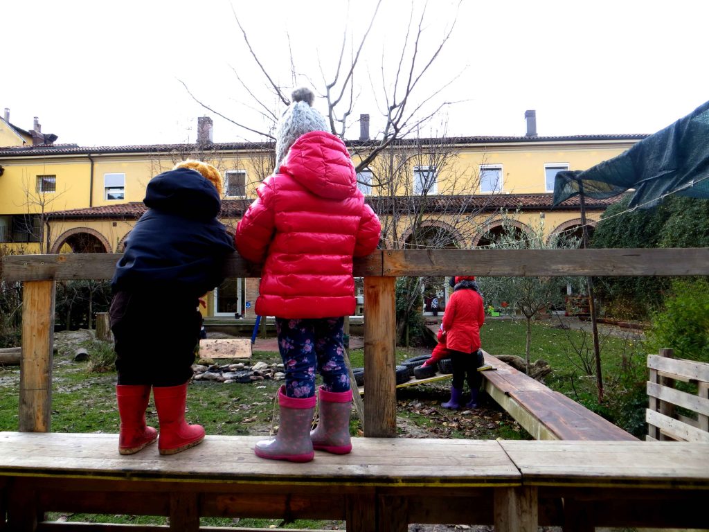Dos infants estan asseguts en una lleixa feta amb taulons al jardí i xerren sorollosament. Parlen, s’escolten, expliquen, de vegades s’aixequen i s’expressen amb gestos. Romanen allà molta estona, gairebé tot el matí. Sorprèn la intensitat del seu joc, fins i tot essent gairebé estàtic. Aquesta dinàmica es repeteix els dies següents i aquest lloc que han triat esdevé un punt de trobada important, com si fos el lloc d’una cita gairebé diària. De vegades s’hi uneix un altre infant i participa de la història; altres vegades, uns troncs o pedretes prenen vida i se’ls atorga un paper o un significat; hi ha moments en què l’espai queda buit perquè els infants es desplacen una estona sota els túnels de salze o a un altre racó del jardí, però es manté sempre com a punt d’arribada. Els qui s’uneixen als dos infants no interrompen el joc, sinó que s’hi sumen. S’enfilen a la lleixa grimpant i solen asseure’s a la part més alta. N’hi ha que escolten, n’hi ha que s’animen a parlar de seguida, n’hi ha que porten materials, però el joc no s’interromp mai. Els infants s’autoregulen, es reparteixen els papers, es donen temps, s’organitzen, sols. L’adult és desterrat, en el sentit que no serveix, potser seria massa gran o massa maldestre per a aquestes dinàmiques, trencaria l’harmonia que es crea de manera tan senzilla en aquell espai. Observacions d’aquest tipus podrien ajudar a reflexionar sobre el context en què succeeix tot i plantejar preguntes, per exemple, per què aquella lleixa desgastada pel temps resulta un catalitzador tan fort per als infants. És una estructura en forma de L, creada especialment amb taulons per depositar-hi materials i eines per treballar al jardí i, sobretot, a l’hort. Té dues bases de suport a dos nivells. Es va pensar expressament per facilitar el treball dels infants i donar cert ordre a les coses. Amb el temps s’hi van afegir més suports, sempre per facilitar l’emmagatzematge de materials. Malgrat totes les idees i reflexions pedagògiques dels adults, aquesta estructura no ha funcionat mai com es va preveure, cosa que es va fer palesa de seguida, des del primer moment que es va col·locar entre les caixes d’un hort mòbil al pati de l’escola. Aquestes lleixes profundes que creen espais ocults a les cantonades, aquests dos nivells d’alçària que conviden a grimpar i assolir una altura interessant, van ser segurament les dues primeres característiques que van dur els infants a veure’l no com un espai d’emmagatzematge, sinó com un espai per a ells, per viure’l. Les expectatives dels adults han dut, durant un cert temps, a recondicionar contínuament aquest espai, a retornar-lo a l’origen, a reorganitzar-lo, desplaçar-lo, dotar-lo de normes d’ús, a dir sovint no als infants. Després, progressivament, el joc i les necessitats dels infants s’han imposat i els educadors han començat a fer-se preguntes, a abandonar les seves certeses i qüestionar-se. Mentrestant, d’una banda, aquesta estructura s’ha anat desgastant, i el temps ha fet invisibles, per exemple, les formes dissenyades per dipositar-hi objectes; de l’altra banda, s’hi han fet canvis, com per exemple, s’han tret els ganxos per penjar-hi coses, s’hi ha afegit un tauló per crear una mena de baranatge a la lleixa alta i s’ha col·locat l’estructura en una altra zona del jardí. Els infants van poder enfilar-se a l’estructura, utilitzar-la segons els seus jocs, guardar-hi els materials que necessitaven, és a dir, no cubells i pales, sinó troncs, pals i pedres. Així, aquestes lleixes simples, precisament perquè no estan definides, no estan acabades, no són perfectes, han esdevingut l’escenari d’un joc molt més gran, més ric i més complex que allò a què estaven destinades originàriament. El joc que es desenvolupa cada dia en aquest lloc varia molt segons qui l’utilitza; s’hi produeixen les primeres aproximacions d’infants d’un any, més interessats pel que contenen les lleixes baixes; l’aproximació d’infants de dos anys, que intenten les primers ascensions; alguns el veuen com un fort, alguns com un dipòsit, alguns com una estructura des de la qual fer salts ben alts; n’hi ha qui l’utilitza, com els dos infants mencionats al principi, com a lloc a l’hora de la migdiada per explicar i explicar-se. En general, podríem definir-lo com un error de disseny i, per altra banda, com un espai que motiva, anima, suma, sosté una certa imaginació, convida a projectar mecanismes per cooperar, per debatre. A més, si canviem el nivell de reflexió, aquest relat porta inevitablement a interrogar-se sobre el paper de l’adult. Com ha d’intervenir? Com, què i quan proposar? Quina posició ha de mantenir per propiciar el joc dels infants? Obre sens dubte molts interrogants, entre els quals el de la importància i de vegades la necessitat d’un adult que es manté al marge. L’educador hauria de comprometre’s a no interrompre el joc, com si fos un guardià que preserva i protegeix instants i moments. Un guardià discret que observa fascinat aquell mecanisme perfecte de joc. Potser ni tan sols hauria de ser tan a la vora com per sentir aquells discursos i paraules. En aquests casos, fins i tot de manera provocadora, el paper de l’adult hauria de poder ser el d’un simple testimoni d’aquell benestar. El debat és ampli i hauria de tenir lloc dins els grups de treball, per tal de compartir reflexions, mètodes i estils educatius sempre a favor del joc autèntic dels infants.
