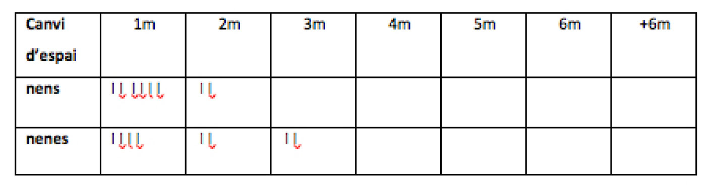 Como dissemos, um exemplo das interações entre meninos e meninas que reproduzem o sexismo são aquelas que acontecem na sala de atividades e no parquinho. Estudos sobre este elemento indicam que ao se analisar os processos de interação de meninos e meninas nesses locais, o sexismo fica claramente evidenciado tanto na brincadeira quanto na ocupação do espaço, portanto um dos objetivos que nos propusemos foi analisar em que medida essas dinâmicas também ocorrem na etapa 0-3anos. A fim de homogeneizar as observações e as análises, focamos nosso interesse nos grupos de 2 a 3 anos em ambas as escolas infantis. Durante três dias, seis pessoas realizaram a observação e gravação de vídeo de dois grupos de 2-3 anos na Escola Bressol La Casa dels Arbres e dois grupos também de 2-3 anos na Escola Bressol La Casa dels Contes.