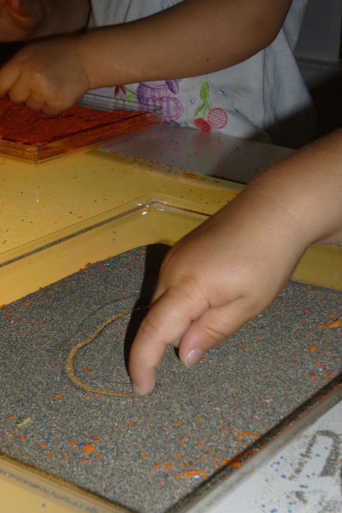 Los primeros trazos están marcados por el azar. Requieren la disposición del niño a investigar, a seguir gestos que no saben cómo terminará. En este movimiento de exploración lúdica de los trazos, la mano y la línea son inseparables: ensayan, buscan, hacen y rehacen, alternativamente sueñan y piensan en el juego de las apariencias. De la repetición emerge el vínculo que especifica el juego.