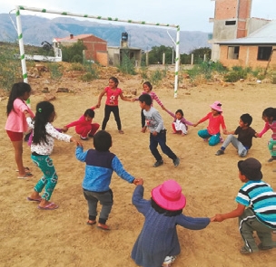 Niñas y niños jugando en Bolivia. Fuente_ http_www.dni-bolivia.org.bo_quienes-somos-2[/caption]