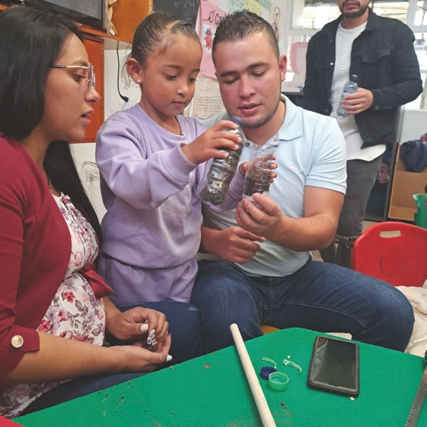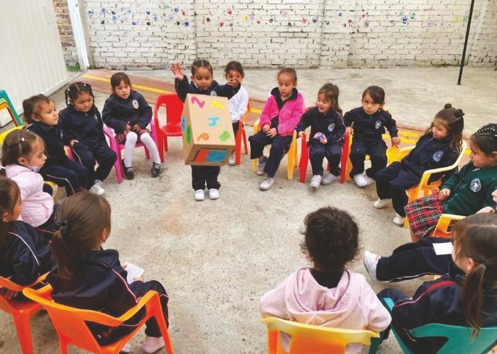 Las maestras y los maestros, posibilitan espacios cada semana en las que los padres vienen al Liceo para leer con sus hijas desde lo que les interesa, dando lugar a configurar un trabajo interrelacionado con otras familias; además, acompañan a las niñas en la construcción de materiales para provocar sus experiencias de aprendizaje con encuentros afectivos alrededor del lenguaje en diversas situaciones de la vida cotidiana, estructuran espacios de exploración y construcción desde el entorno natural, abordando eso que las niñas quieren descubrir, indagar, crear, soñar desde su escuela y la familia en un marco flexible, asertivo, inclusivo y coeducador. Sin lugar a dudas, abre la ventana al vínculo entrañable desde el triángulo amoroso donde las familias se involucran, leen, sueñan, investigan y crean mundos posibles junto con sus hijas desde sus propias realidades, curiosidades, preguntas y creaciones verbales, escritas y no verbales, para el Liceo, un padre que se involucra es un padre que enseña y a la vez.
