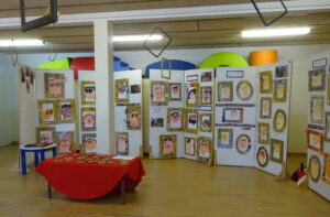Pedimos al Centro de Recursos Pedagógicos (CRP) del barrio unos paneles para montar la exposición. Intentamos colocarlo todo con sumo gusto y cuidado. Colgamos marcos del techo, adecuamos un rincón para que los visitantes pudieran hacerse un selfie enmarcados y colocamos textos para mostrar el proceso de todo lo que estaba expuesto.
