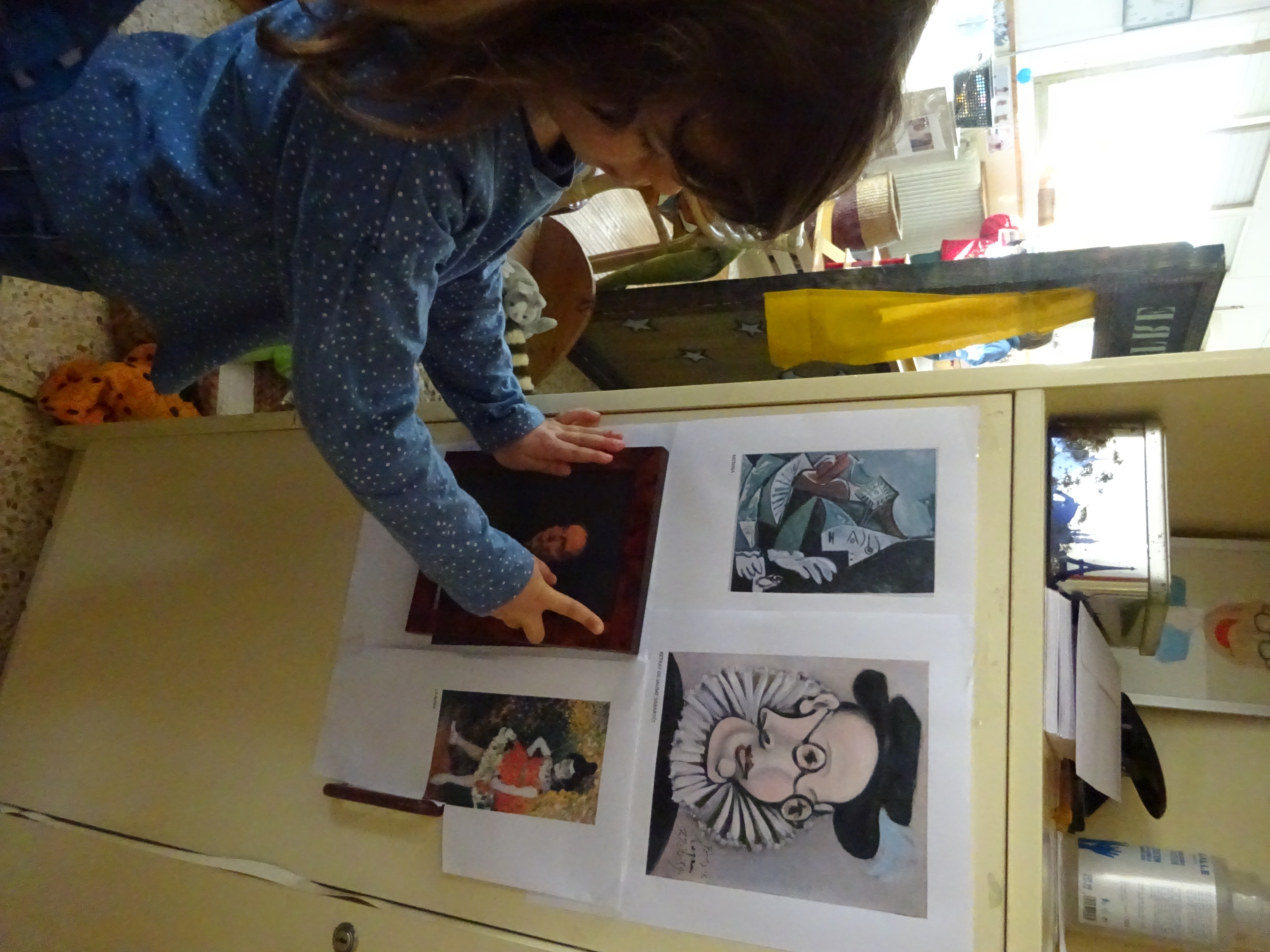 Días antes de ir al Museo hablamos de ello con los niños, contamos el cuento “Pablito” en el cual se relata la vida de Picasso cuando era niño, dejamos a su alcance libros de arte de Picasso para que se familiarizaran con la obra del pintor y alguno lo observamos y comentamos todos juntos.