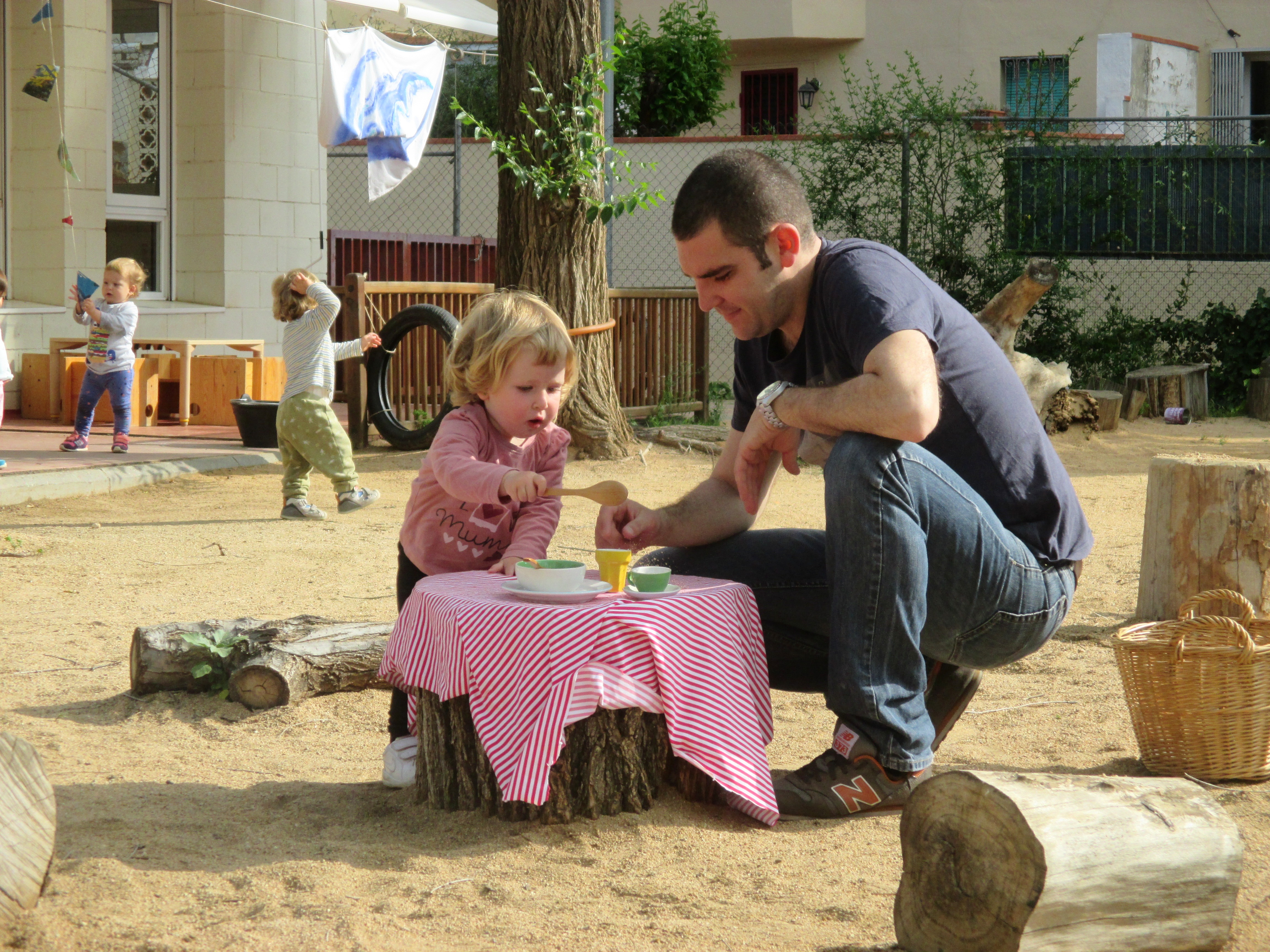 Les famílies estan acostumades que sovint les rebem al jardí i també les hi acomiadem. Així mateix, les entrades i sortides no tenen un horari fix. Els familiars poden acompanyar i estar-se amb els infants bona part del dia. Un espai compartit per tota l’escola facilita que els nens i les nenes es relacionin entre les diferents edats i també amb els familiars.