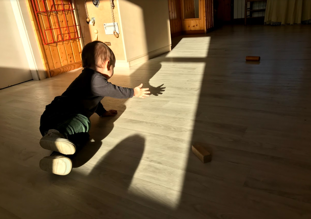 Cada dia el sol entra per les finestres. Les ombres són presents i són motiu de curiositat i de joc. A més, van observant com el sol «es va movent» a través de l’aula.