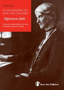 Amb motiu dels seus 95 anys, l’ong Save the Children publica una revista en format pdf dedicada a Eglantyne Jebb i als motius que la van portar a fundar aquesta ong que té el benestar dels infants com a principal objectiu. La revista, en castellà, inclou una ressenya sobre la vida d’Englantyne Jebb i també les diverses declaracions sobre els drets dels infants. A més, adjunta diverses propostes didàctiques. La primera, amb el títol «Replantegem el món», s’adreça a l’educació infantil. Les altres, a Primària i Secundària.