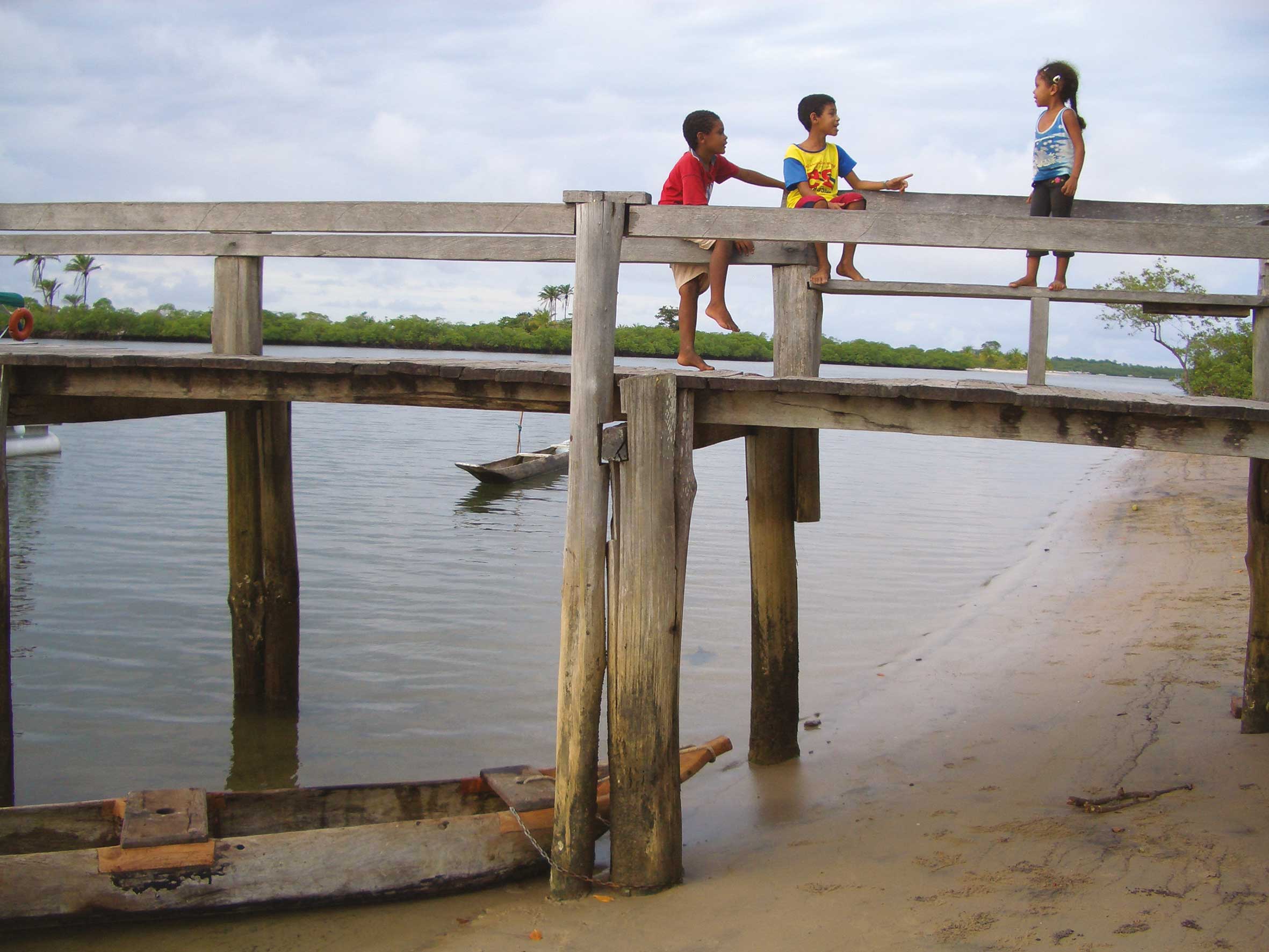 Què es diuen? De què parlen? A la fotografia, presa al Brasil, els infants xerren, s'expliquen, s'escolten. Són en un moll precari, un espai que han tocat i trepitjat, i s'atreveixen a enfilar-s'hi perquè l'han conegut des de sempre. El seu cos té la memòria de cada llata i dels jocs que els han portat a superar els reptes que cadascú s'ha imposat. I s'ha convertit en lloc de reunió on, sense interferències i amb tot el temps del món, s'enriqueixen mútuament, troben nous jocs i noves paraules que els permetran portar més enllà el pensament. Imatge i text: Raimon Portell