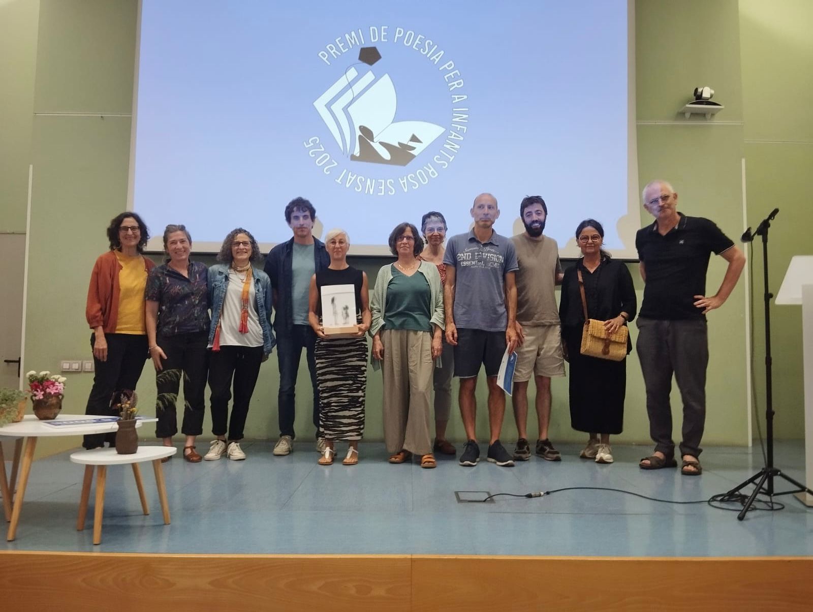 La guanyadora del Premi de Poesia per a Infants Rosa Sensat, amb els finalistes,